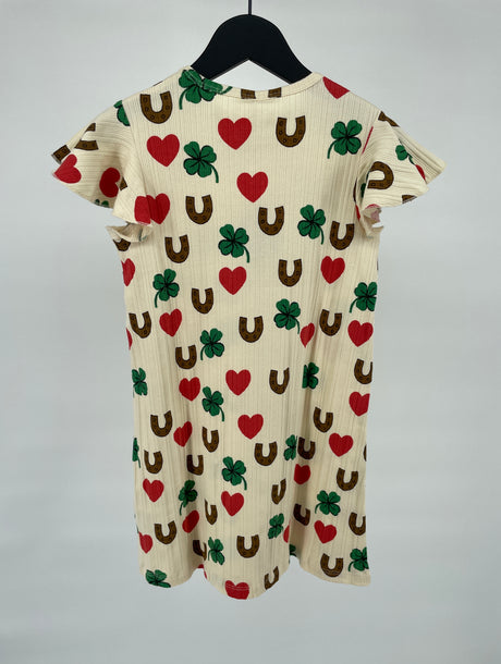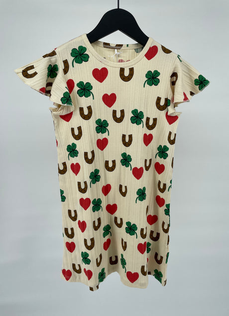 Jurk Beige Hartjes Klavertjes Hoefijzer Print