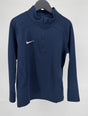 Donkerblauwe longsleeve training top met 1/4 rits van Nike in maat 140/146. Met geborduurde swoosh op de borst, details voorop en zachte fleece binnenkant.