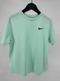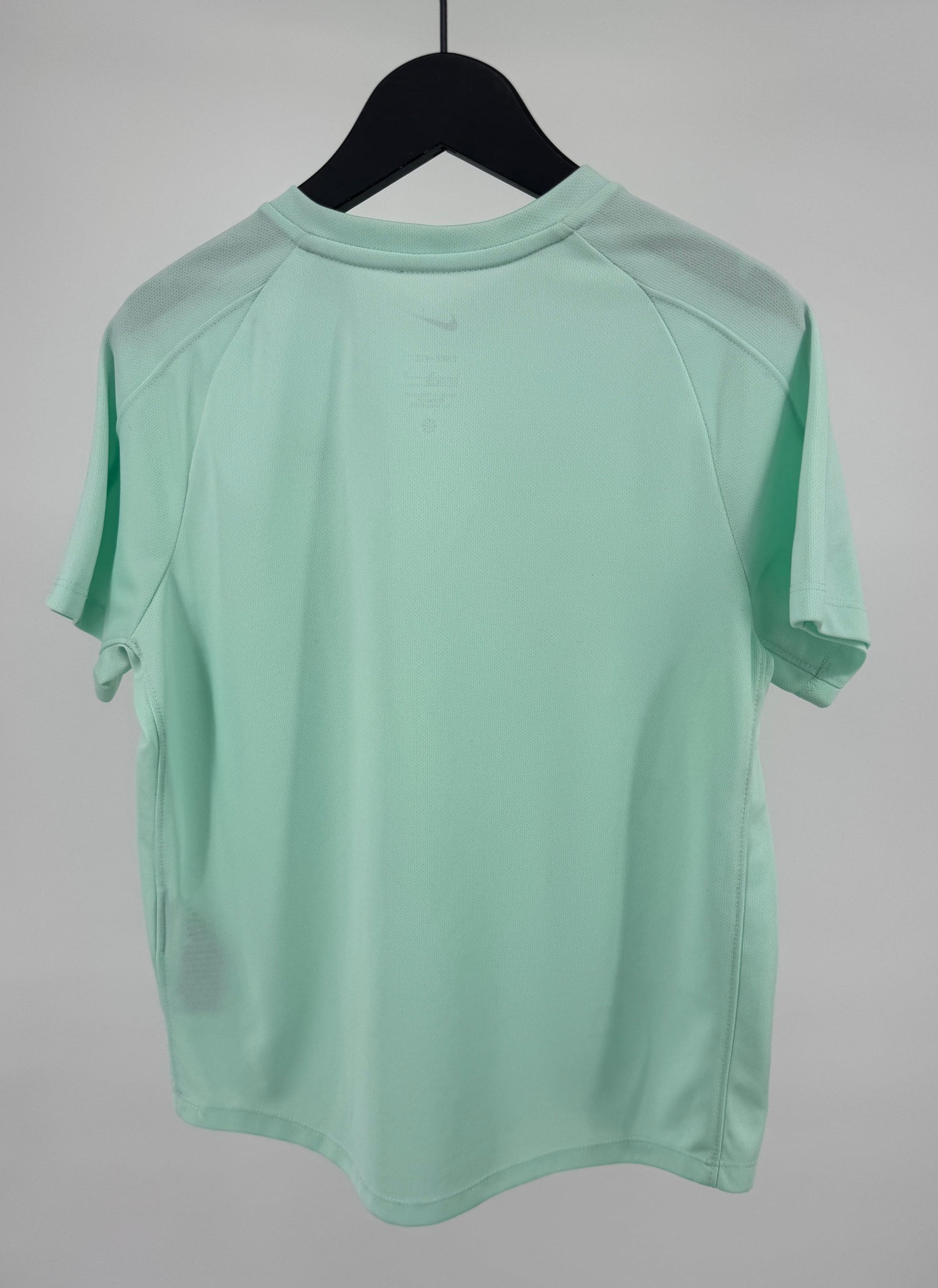 Mintgroen tennis shirt van Nike in maat 152 / 158. Met Dri-fit technologie, een kleine V-hals en zwarte swoosh op de borst.
