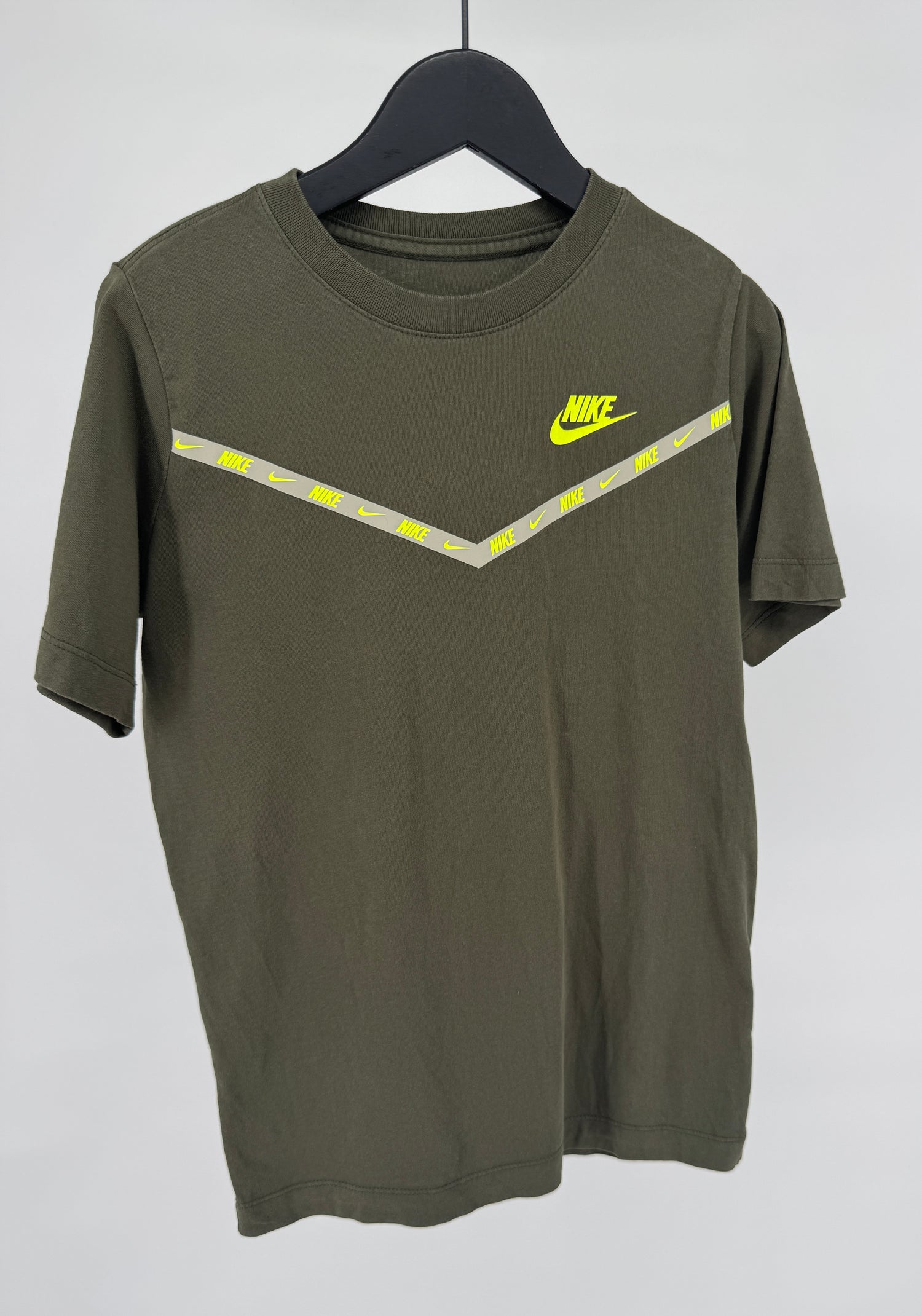 Groen t-shirt van Nike in maat 140 / 146 met kleine gele accenten op de borst en logo ‘V’ print voorop, zie foto’s.