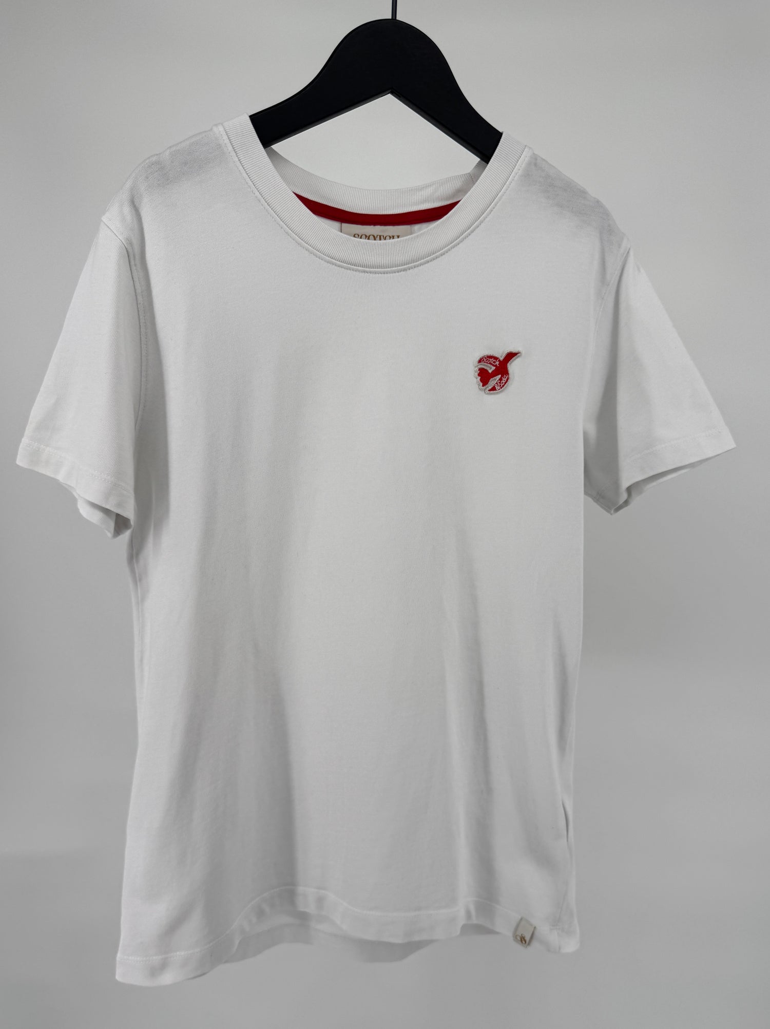 Wit t-shirt met rood geborduurd vogeltje op de borst van Scotch & Soda in maat 164.