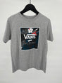 Grijs gemêleerd t-shirt van Vans in maat 122 / 128. Voorop staat een grote print in een box, zie foto’s.