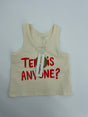 Beige tanktop van Mini Rodini met print in rode letters ’Tennis Anyone?’, zie foto's.