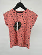 Roze top van Finger in the Nose in maat 134 met all over print van Bart en Lisa Simpson, zie foto’s.