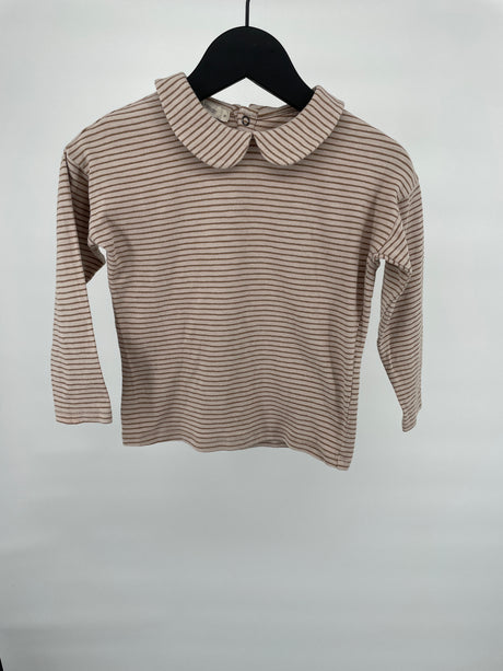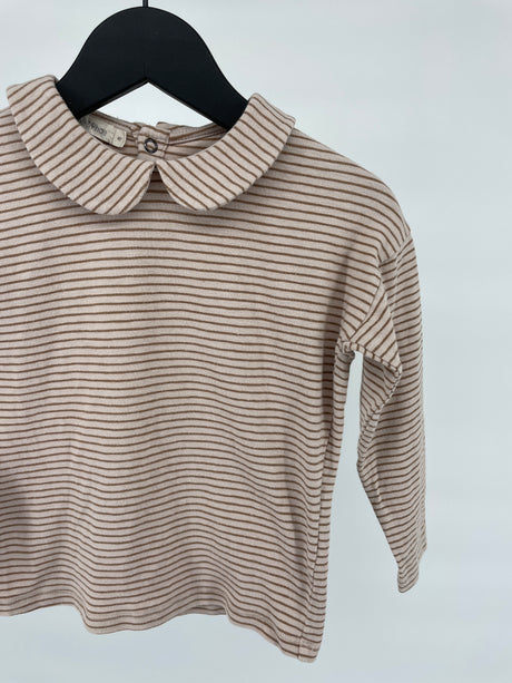 Top Lange Mouwen Bruin Gestreept met Kraagje Maat 104
